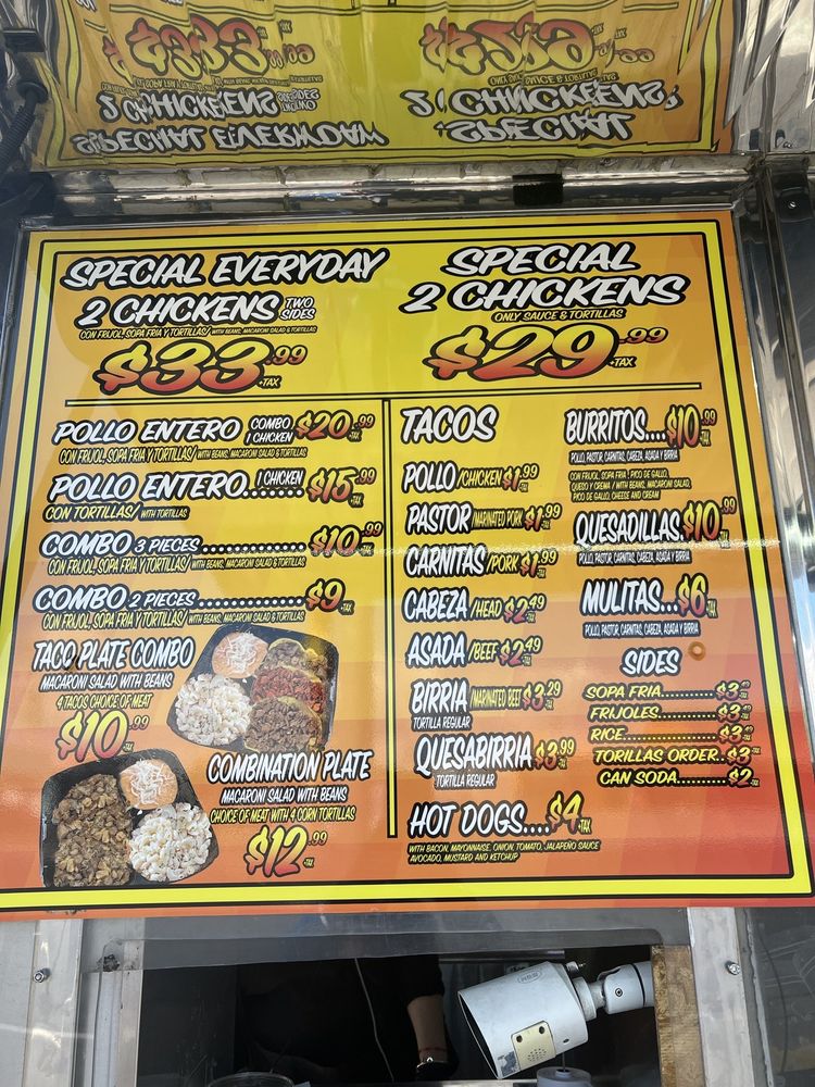 Pollos Culiacan 4, located in Las Vegas, offers a mouthwatering menu of Mexican-style chicken dishes. Customers rave about the flavorful rotisserie chicken, accompanied by sides like tortillas, beans, and pasta salad. The food truck also serves tacos, tortas, and hot dogs, but the standout dish is the Pollo Asado, reminiscent of Hawaiian Huli Huli chicken. With rave reviews praising the moist and delicious chicken, combined with a variety of tasty sauces, Pollos Culiacan 4 is a must-visit for chicken lovers in the area. The convenient street parking and friendly service make dining here a pleasant experience. Don't miss out on this hidden gem for authentic Mexican flavors on the go.